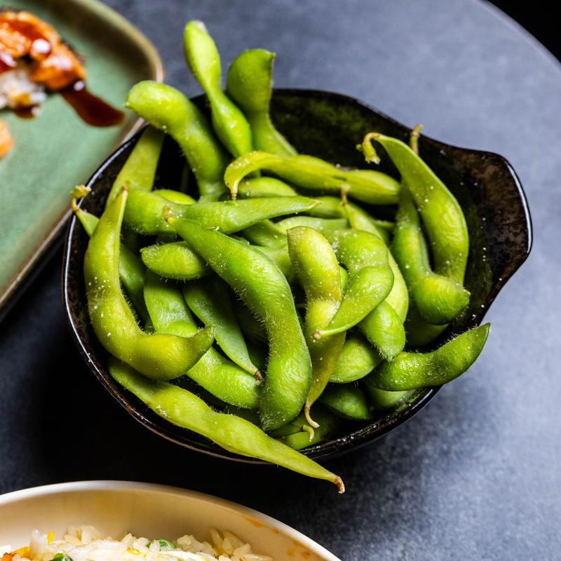 Steamed young soybeans tossed in a savory blend of garlic, cracked pepper, and spicy chili sauce for a bold, aromatic kick.