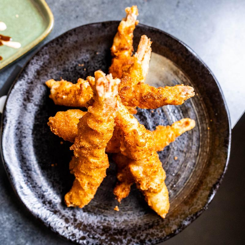 Spicy shrimp tempura and creamy avocado come together in a crunchy roll, coated with tempura flakes and finished with a kick of hot sauce.